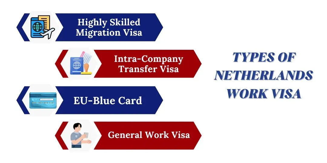 Netherland work visa is a visa applicable to all aspiring young talented professionals who want to build their life in the country. By understanding every type of Netherlands work visa, applicants get a clear picture of which type of work visa is best suited according to their profile. The major types of Netherlands work visa are listed, such as: